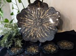 Add a bold, elegant touch to your table with this black and gold burst epoxy resin platter and coaster set. Handcrafted with a glossy finish, each piece features unique gold accents radiating through deep black resin. Perfect for entertaining or gifting, this set blends modern style with functional durability.